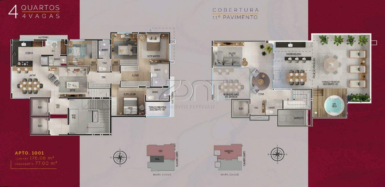 Ao abrir da porta do elevadore os diferenciais aqui já são prontamente notados: o piso do hall privativo, em porcelanato, se adentra por toda a sala do apartamento. O espaço da sala se distribui em 2 confortáveis e delimitados ambientes, e o lavabo é mais do que bem vindo para o conforto dos amigos mais queridos em visita. A cozinha, com proposta em estilo americano e integração com a sala, tem espaço o bastante para preparar as melhores receitas em dias de celebrações ou mesmo para as refeições rápidas do dia a dia. A área de serviço ganhou a mesma proporcionalidade, comportando ainda banheiro para a privacidade dos funcionários. A extensão da sala leva os moradores à área externa com aproximadamente 117m² de espaço aberto para executar o projeto que melhor atender o estilo de vida da família: espaço gourmet, SPA com jacuzzi... ou qualquer outra ideia que traga ainda mais alegria aos vindouros dias! Adentrando a parte íntima, os 4 calorosos quartos - sendo 2 suítes e 2 semi suítes - entregam aconchego genuíno com janelas com venezianas, luz natural abundante, piso em laminado de madeira e dreno para instalação de equipamentos de ar condicionado. Destaque para a suíte master com amplo closet e banheiro acolhedor para banhos quentes e relaxantes ao final de um proveitoso dia de trabalho!
