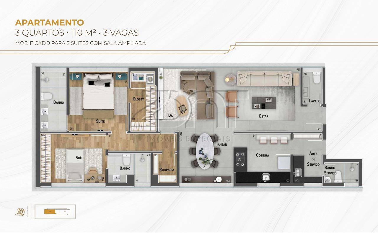 O apartamento foi desenvolvido de forma a otimizar o espaço interno, oferecendo ambientes harmônicos, confortáveis e funcionais. A sala dispõe de 2 ambientes amplos e distintos e permite total integração com a vibração do bairro. Aliás, as janelas ao longo da extensão da sala captam bastante luz natural levando ainda mais aprazimento ao apartamento. A espaçosa cozinha - em estilo americano - é perfeita para as refeições rápidas e também para elaborar novas receitas para a família ou convidados. A área de serviço é suficiente para as tarefas do dia a dia e ainda conta com banho dedicado aos funcionários. A parte íntima conta com rouparia e 3 aconchegantes quartos, sendo 2 semi suítes e destaque especial para a suíte master com closet. Quanto aos banhos; são perfeitos para acalmar o ritmo das rotinas diárias.