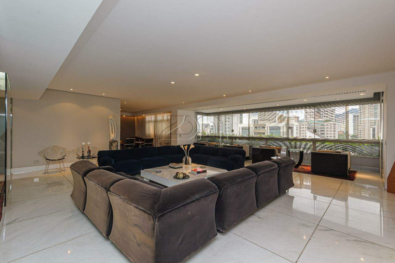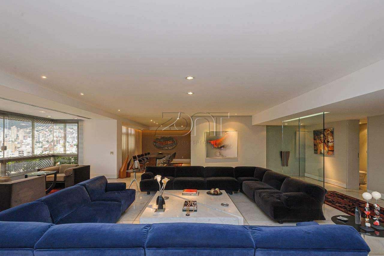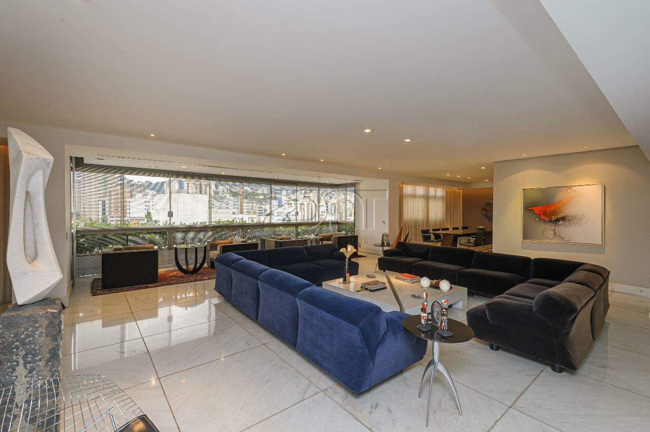 A amplitude somada à vista em 360º e a abundante luz natural recebida combinam-se para oferecer a liberdade o o conforto absoluto que a vida pede. A varanda, já integrada, é um charme à parte com a vista exclusiva da Serra do Curral e compõe o vasto e imponente living que conta ainda com sala de jantar e sala de vinhos. Aliás, este espaço acomoda a proposta que melhor adequar ao seu estilo de vida: sala de cartas, sala de leitura, home-office... Destaque para as janelas que se estendem por todo o comprimento da sala e, juntamente com o projeto de iluminação, ajudam a ressaltar cada detalhe do primoroso piso em mármore. Modernos painéis em vidro evidenciam o desmembramento do living e da área de circulação que leva à cozinha, que como todos os ambientes oferece conforto absoluto à família, bem como da área íntima. Antes de acessar as suítes, o estar íntimo oferece à família um espaço aconchegante para a convivência afetiva. E para assegurar a independência e conforto de cada membro da família, 4 suítes enormes e com closet são perfeitamente calorosas com seu piso em madeira e climatização. Os banheiros também não deixam de oferecer as melhores sensações de relaxamento com amplo espaço e acabamentos em mármore. Destaque para o quarto de banho da suíte master e a hidromassagem dos sonhos, convidativa e acolhedora para os dias mais exaustivos...