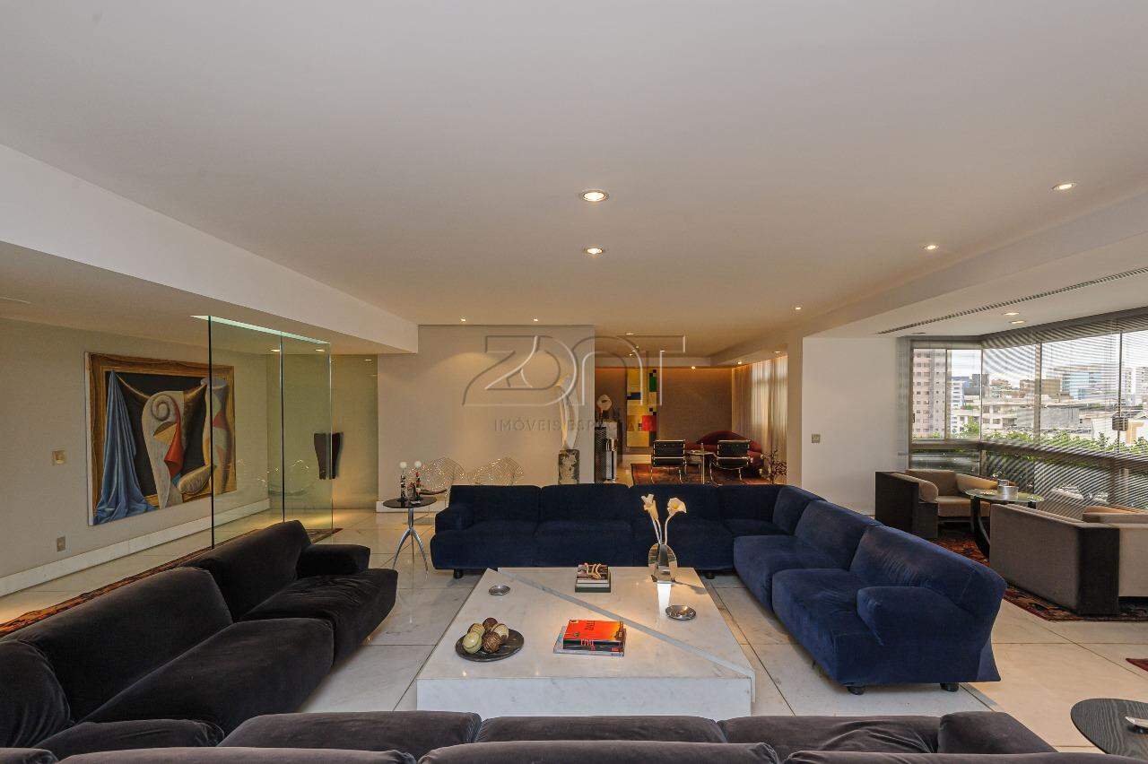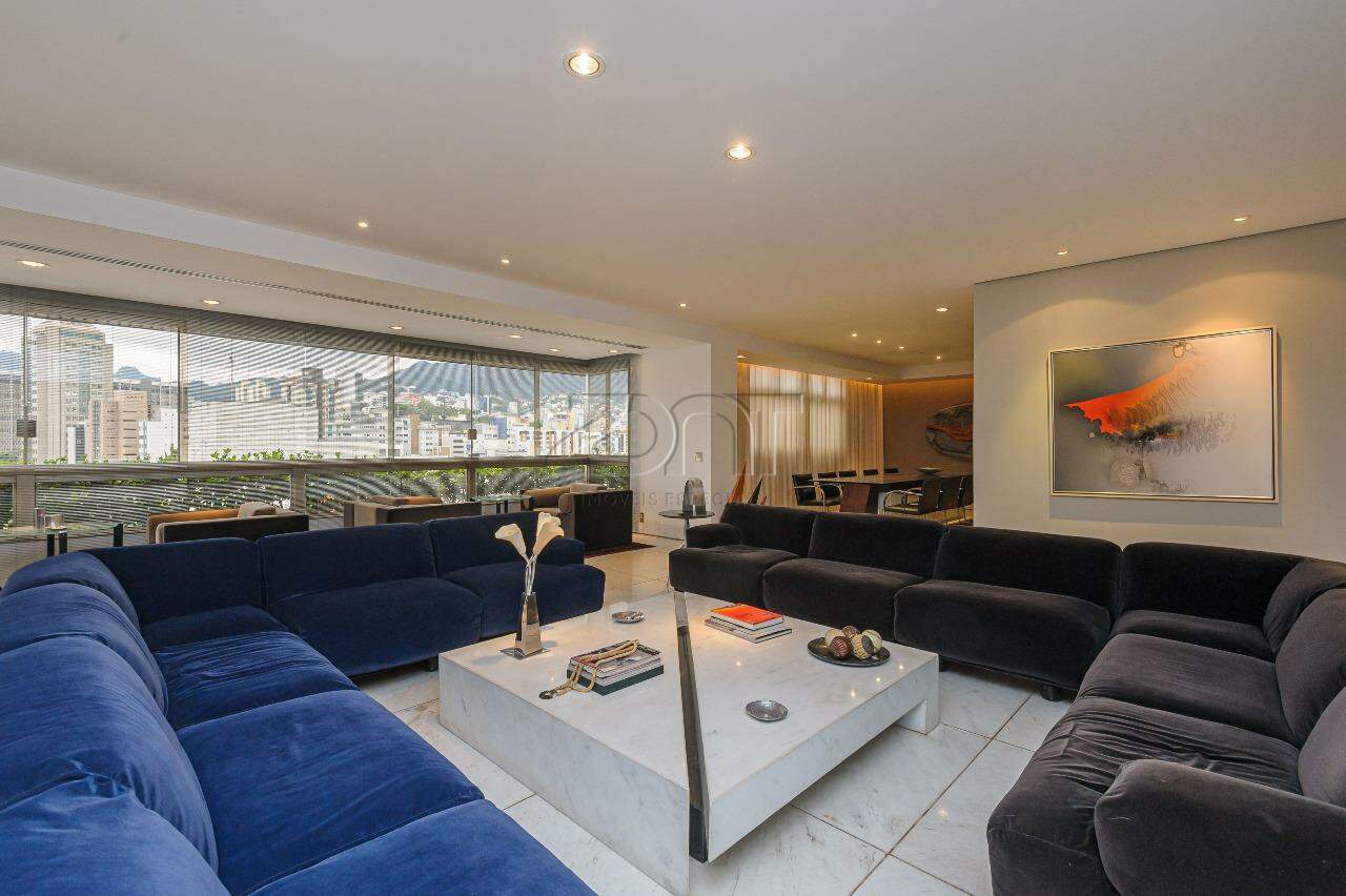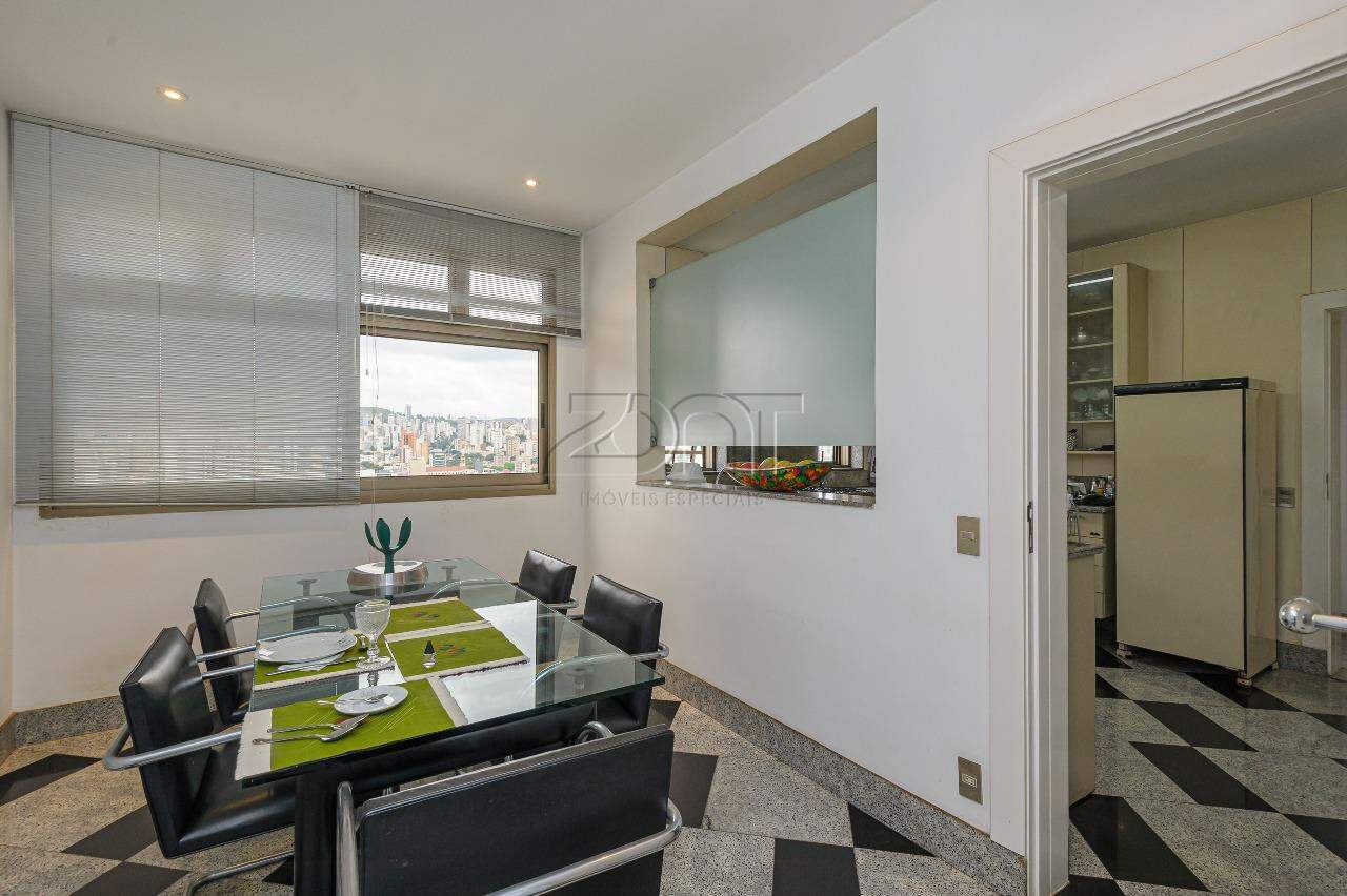 A amplitude somada à vista em 360º e a abundante luz natural recebida combinam-se para oferecer a liberdade o o conforto absoluto que a vida pede. A varanda, já integrada, é um charme à parte com a vista exclusiva da Serra do Curral e compõe o vasto e imponente living que conta ainda com sala de jantar e sala de vinhos. Aliás, este espaço acomoda a proposta que melhor adequar ao seu estilo de vida: sala de cartas, sala de leitura, home-office... Destaque para as janelas que se estendem por todo o comprimento da sala e, juntamente com o projeto de iluminação, ajudam a ressaltar cada detalhe do primoroso piso em mármore. Modernos painéis em vidro evidenciam o desmembramento do living e da área de circulação que leva à cozinha, que como todos os ambientes oferece conforto absoluto à família, bem como da área íntima. Antes de acessar as suítes, o estar íntimo oferece à família um espaço aconchegante para a convivência afetiva. E para assegurar a independência e conforto de cada membro da família, 4 suítes enormes e com closet são perfeitamente calorosas com seu piso em madeira e climatização. Os banheiros também não deixam de oferecer as melhores sensações de relaxamento com amplo espaço e acabamentos em mármore. Destaque para o quarto de banho da suíte master e a hidromassagem dos sonhos, convidativa e acolhedora para os dias mais exaustivos...