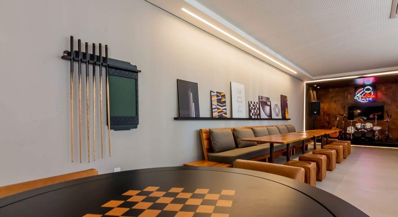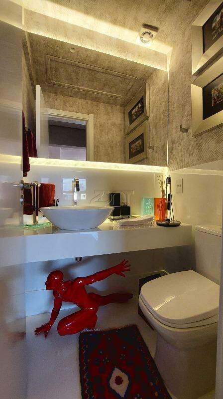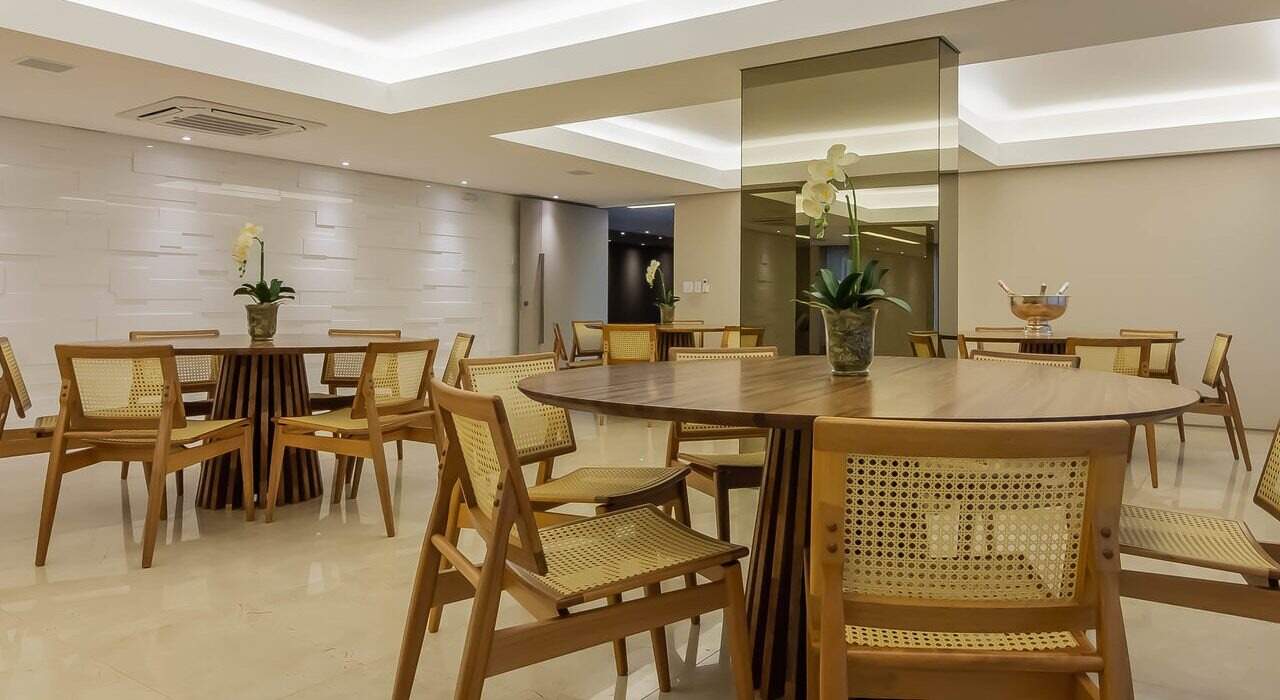 ELEGANTE o piso das salas revestido em cor fria (mármore NanoGlass) oferecem aconchego e estilo, aliado ao conceito de espaços integrados que proporcionam amplitude e sensação de liberdade. Ademais, a notável marcenaria e o projeto de iluminação trazem ainda mais acolhimento a cada um dos ambientes. Ademais, salas e quartos contam com ar condicionado tipo 'cassete'.