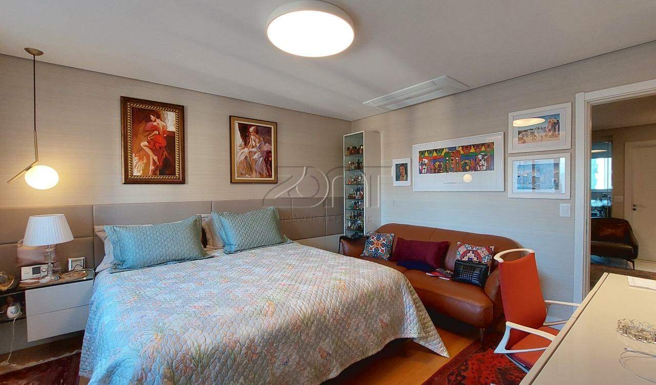 A parte íntima se destaca pelo estar, que certamente oferece uma proposta alternativa de home-office, e os 4 calorosos quartos com piso em madeira maciça, ótimos armários com portas de correr, janelas com venezianas estilo ‘black-out’ com acionamento automático e ar condicionado tipo 'cassete', sendo 02 suítes e 02 semi-suítes, onde a suíte máster oferece amplo closet e quarto de banho com hidromassagem, 2 pontos de chuveiros e bancada em mármore NanoGlass com 2 cubas. Finalmente, 4 vagas de garagem estarão disponíveis para os moradores desta unidade.