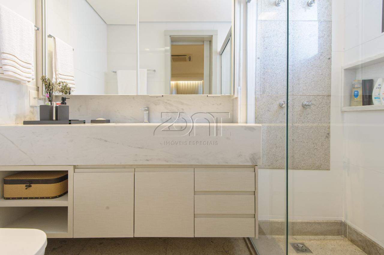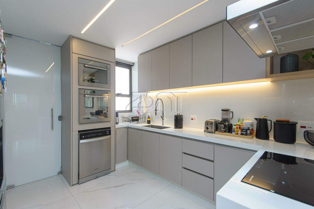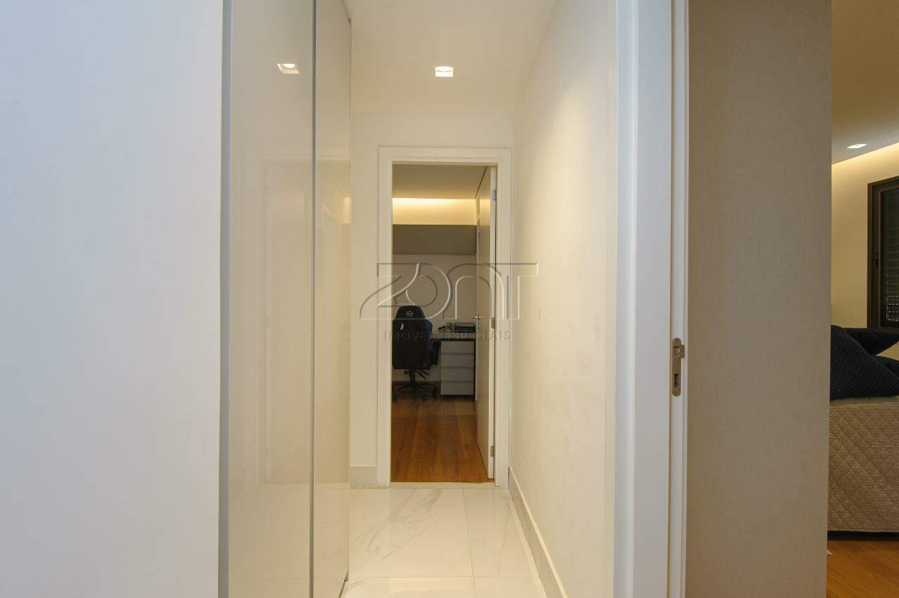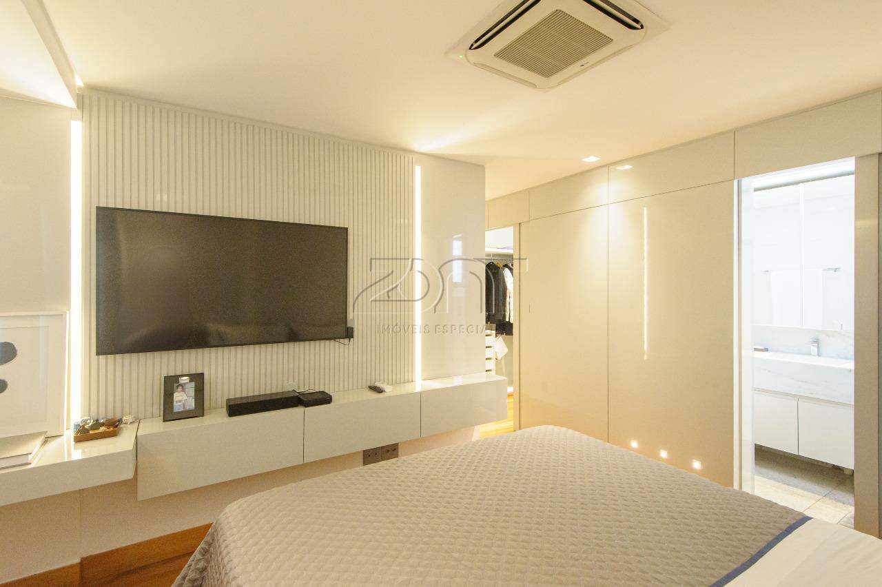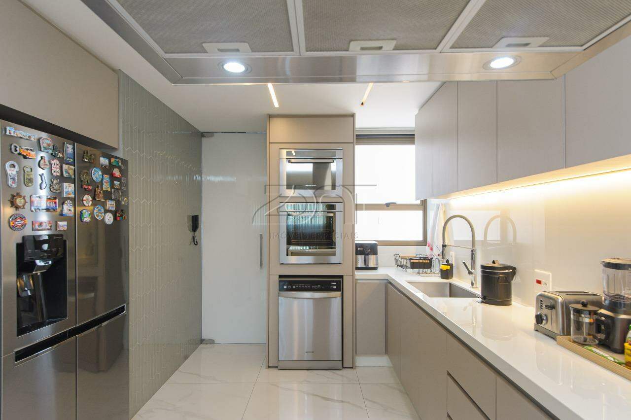 Desenvolvido em espaço interno de 144,00 m², este admirável projeto enche os olhos em cada detalhe executado. A sala, disposta em 3 ambientes distintos já ressalta o aconchego e afetividade propostos no projeto: O piso em porcelanato importado, a marcenaria e painéis em laca, o projeto de iluminação, a parede da sala revestida com lindo jardim vertical... cada minuciosidade reforça ainda mais a empatia do apartamento. A aprazível vista das janelas onde originalmente se dispunha a varanda é perfeita para desligar mente e corpo ao fim de um longo dia de trabalho. A cozinha... ahhh, a cozinha é uma obra de arte: bancadas em Silestone, marcenaria com alinhamentos perfeitos, cooktop por indução em vidro cerâmico, e diversos outros equipamentos completam este que certamente será o ambiente final de todas as confraternizações! Anexo à cozinha tem-se a funcional área de serviço e os indispensáveis quarto e banho para funcionários.