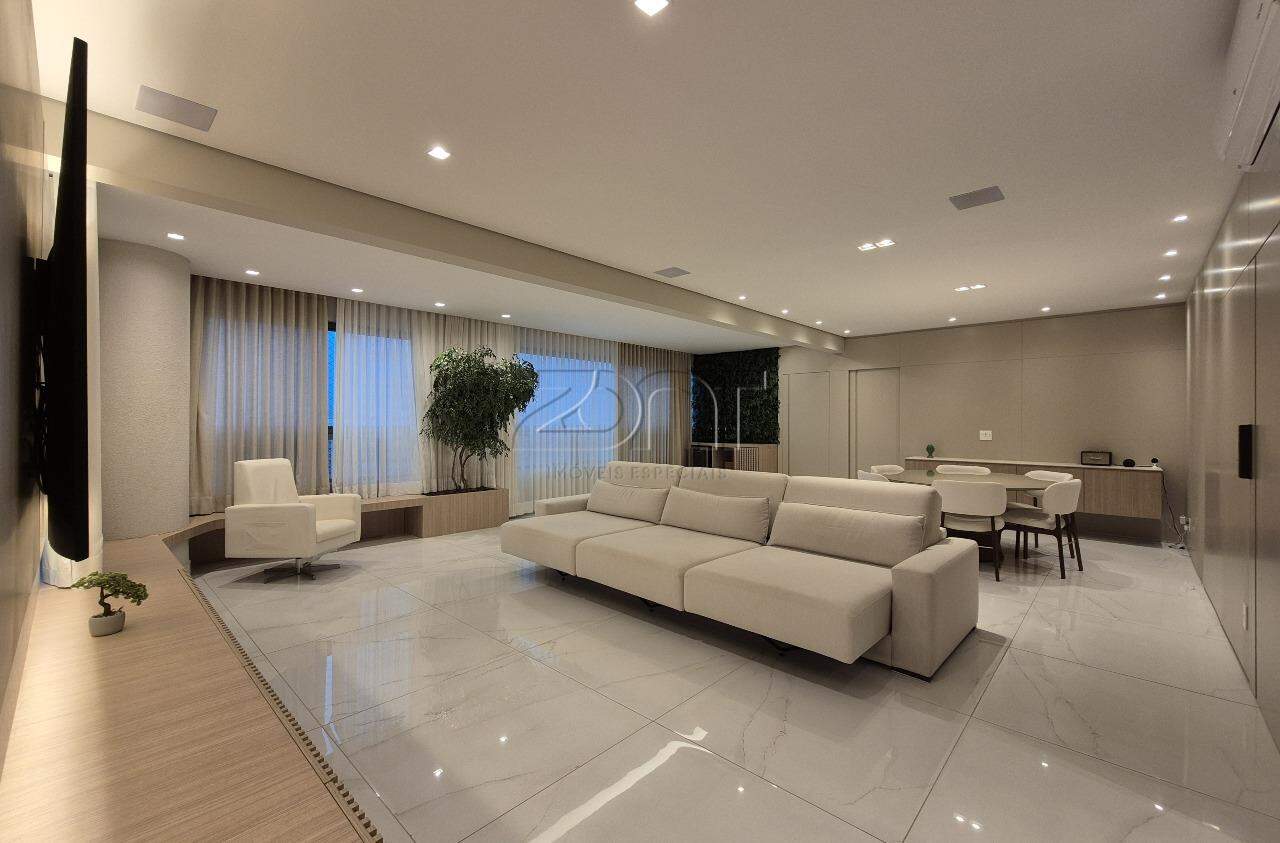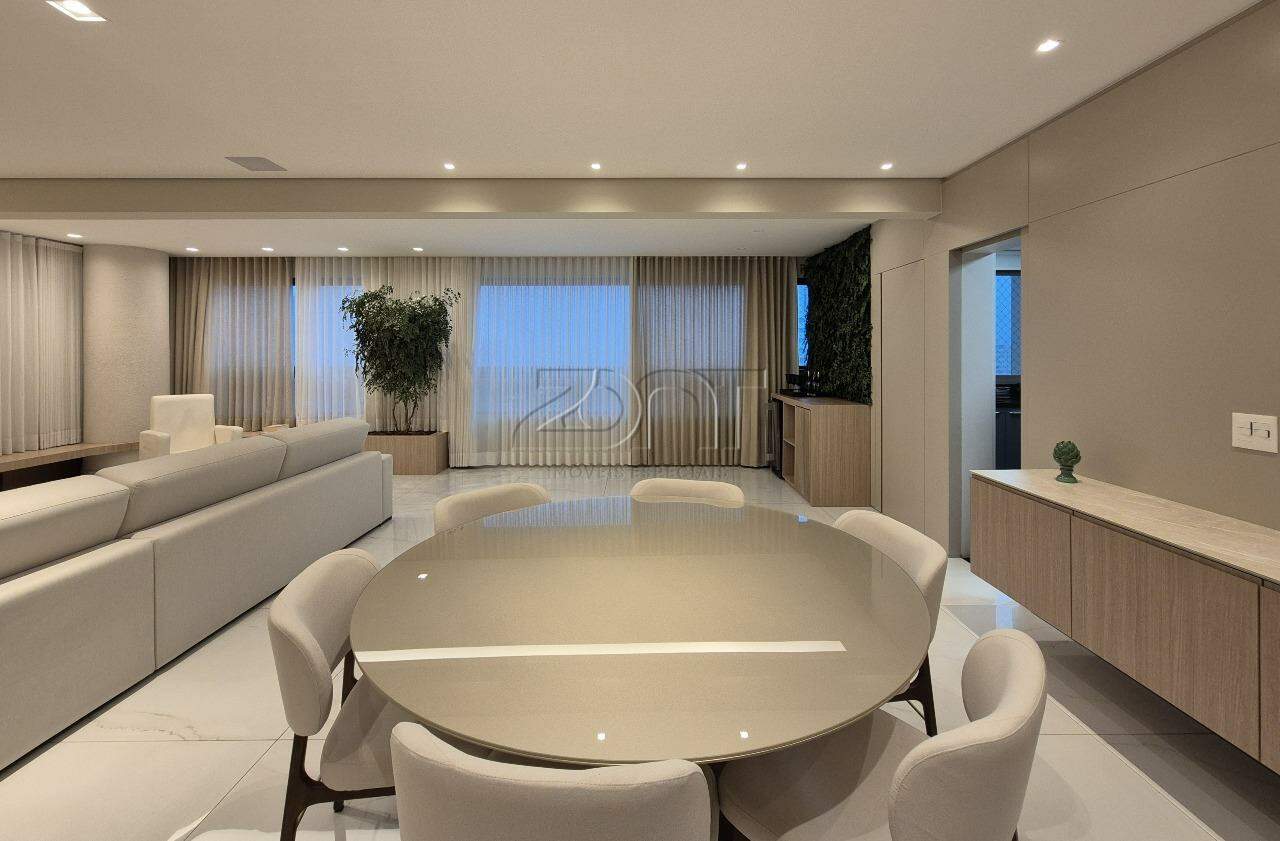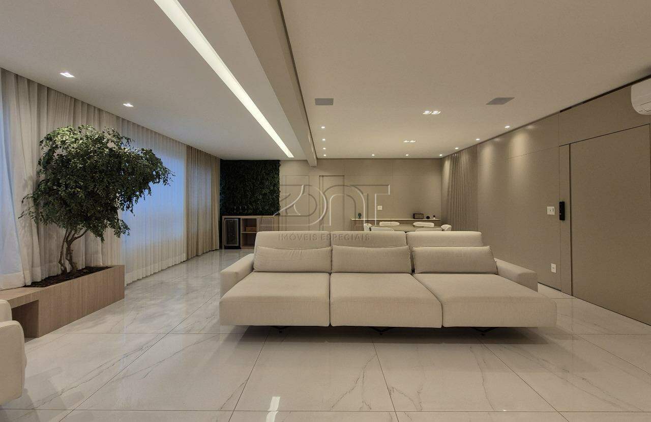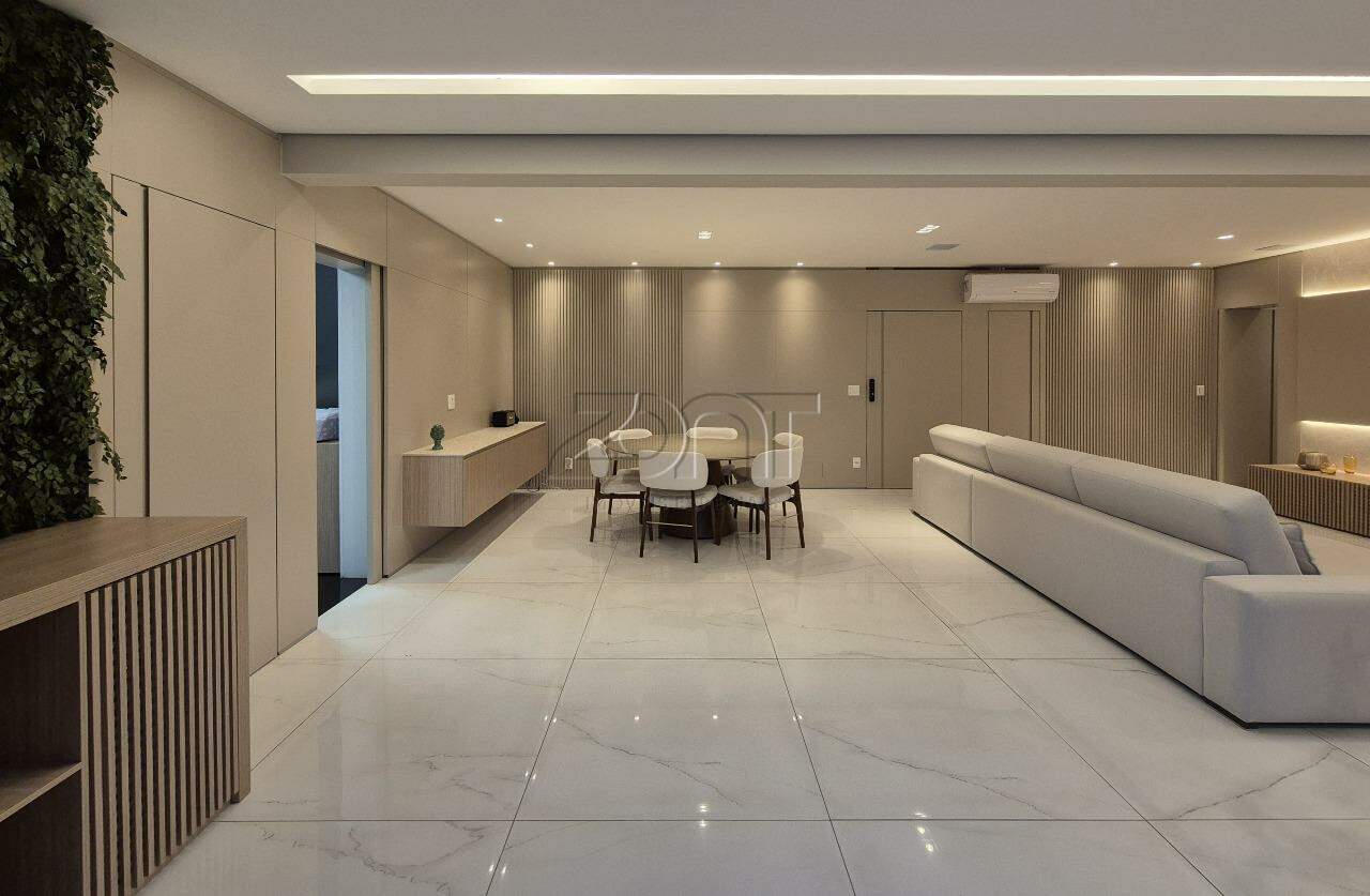 Morar em um apartamento com um projeto assinado faz toda a diferença, principalmente quando a proposta visa o conforto visual, térmico e lúmico. Aqui, o projeto de iluminação evidencia cada detalhe, elementos e cores utilizadas. Cada material escolhido - piso, painéis e marcenaria sob medida - se harmoniza em total equilíbrio e leva aos moradores um sentimento ainda maior de aconchego. Nos dias de sol, as amplas janelas se estendem por todo o comprimento da sala que recebe luz natural abundante e evidencia a natureza em seu horizonte. A convidativa cozinha dispõe de lindos e volumosos armários sob e sobre bancadas, espaço dedicado aos desjejuns, além de churrasqueira importada e perfeita para o preparo dos melhores cortes sem o odor espalhado pelo apartamento. A área de serviço não poderia de oferecer dimensão generosa, assim como a despensa e o quarto e banho para os funcionários.