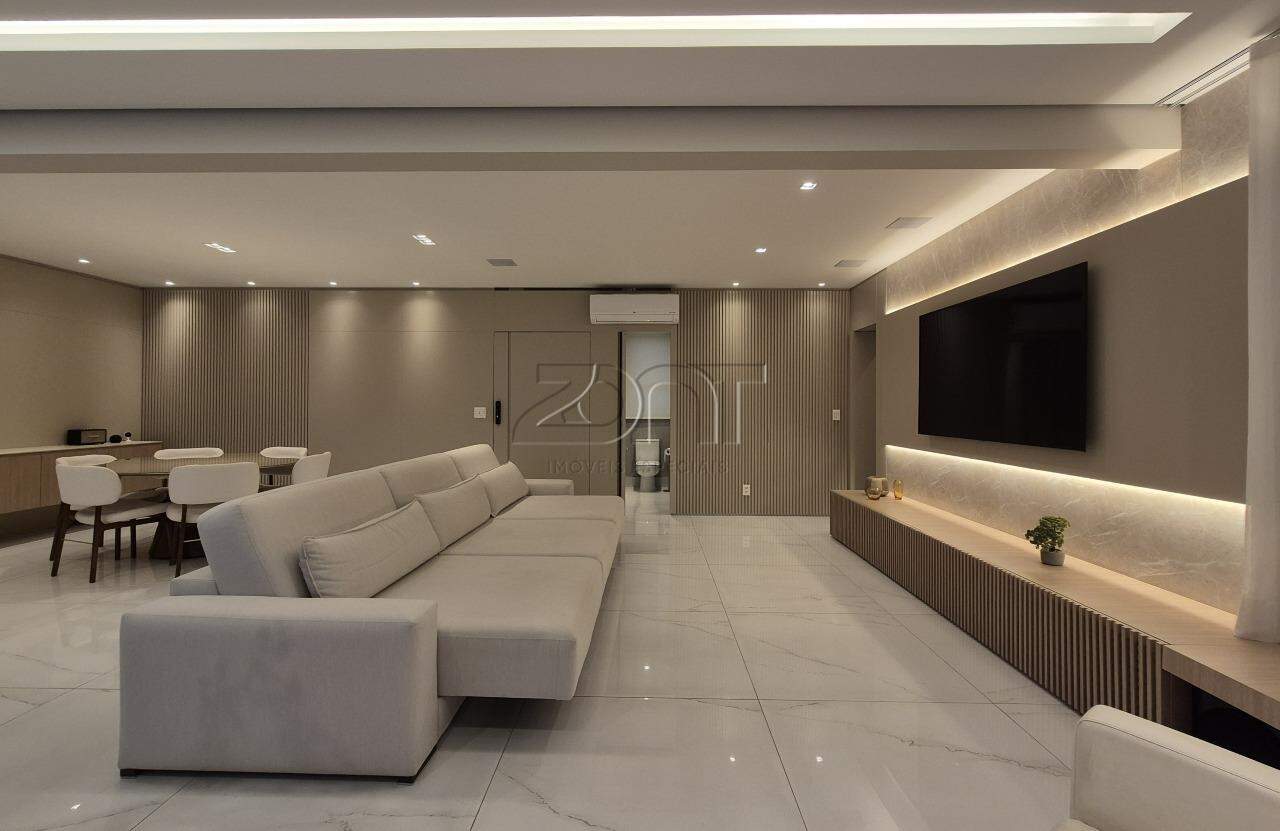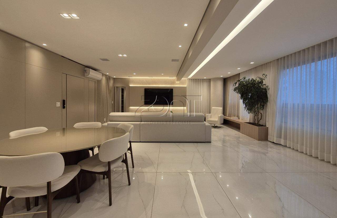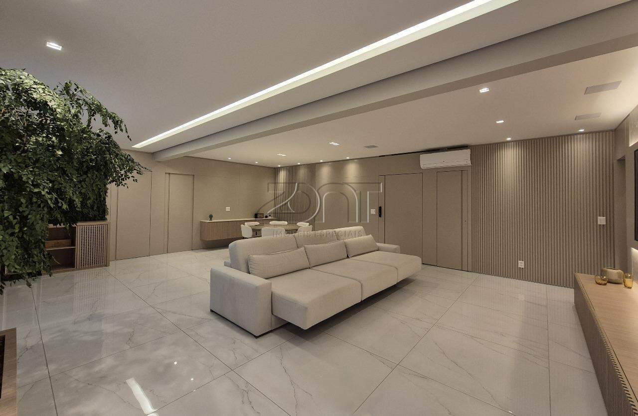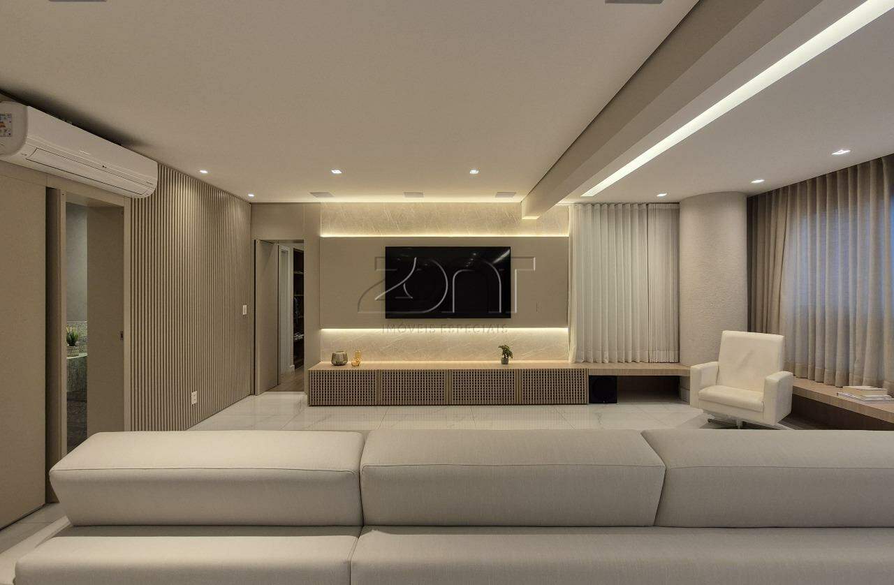 Morar em um apartamento com um projeto assinado faz toda a diferença, principalmente quando a proposta visa o conforto visual, térmico e lúmico. Aqui, o projeto de iluminação evidencia cada detalhe, elementos e cores utilizadas. Cada material escolhido - piso, painéis e marcenaria sob medida - se harmoniza em total equilíbrio e leva aos moradores um sentimento ainda maior de aconchego. Nos dias de sol, as amplas janelas se estendem por todo o comprimento da sala que recebe luz natural abundante e evidencia a natureza em seu horizonte. A convidativa cozinha dispõe de lindos e volumosos armários sob e sobre bancadas, espaço dedicado aos desjejuns, além de churrasqueira importada e perfeita para o preparo dos melhores cortes sem o odor espalhado pelo apartamento. A área de serviço não poderia de oferecer dimensão generosa, assim como a despensa e o quarto e banho para os funcionários.