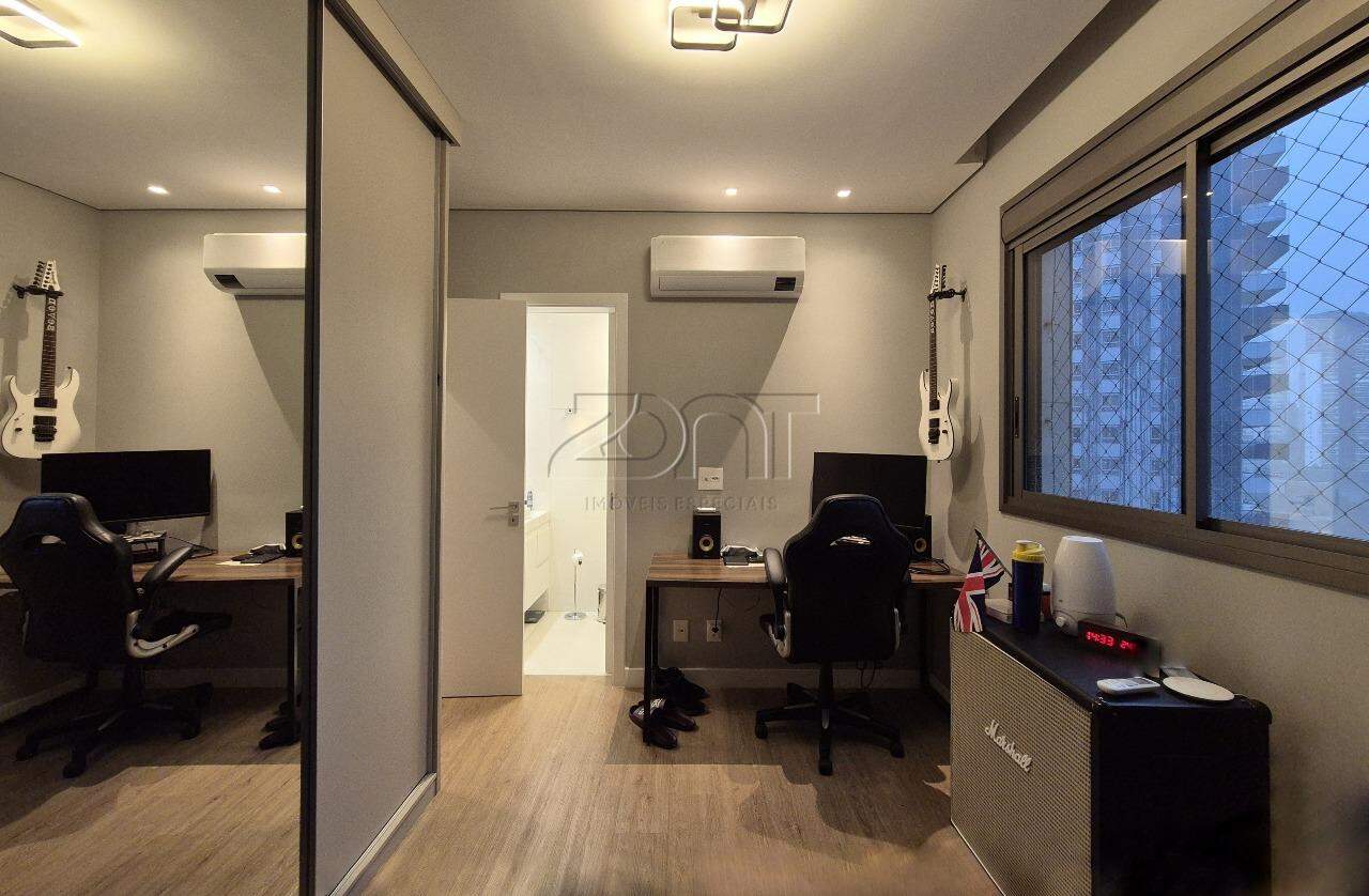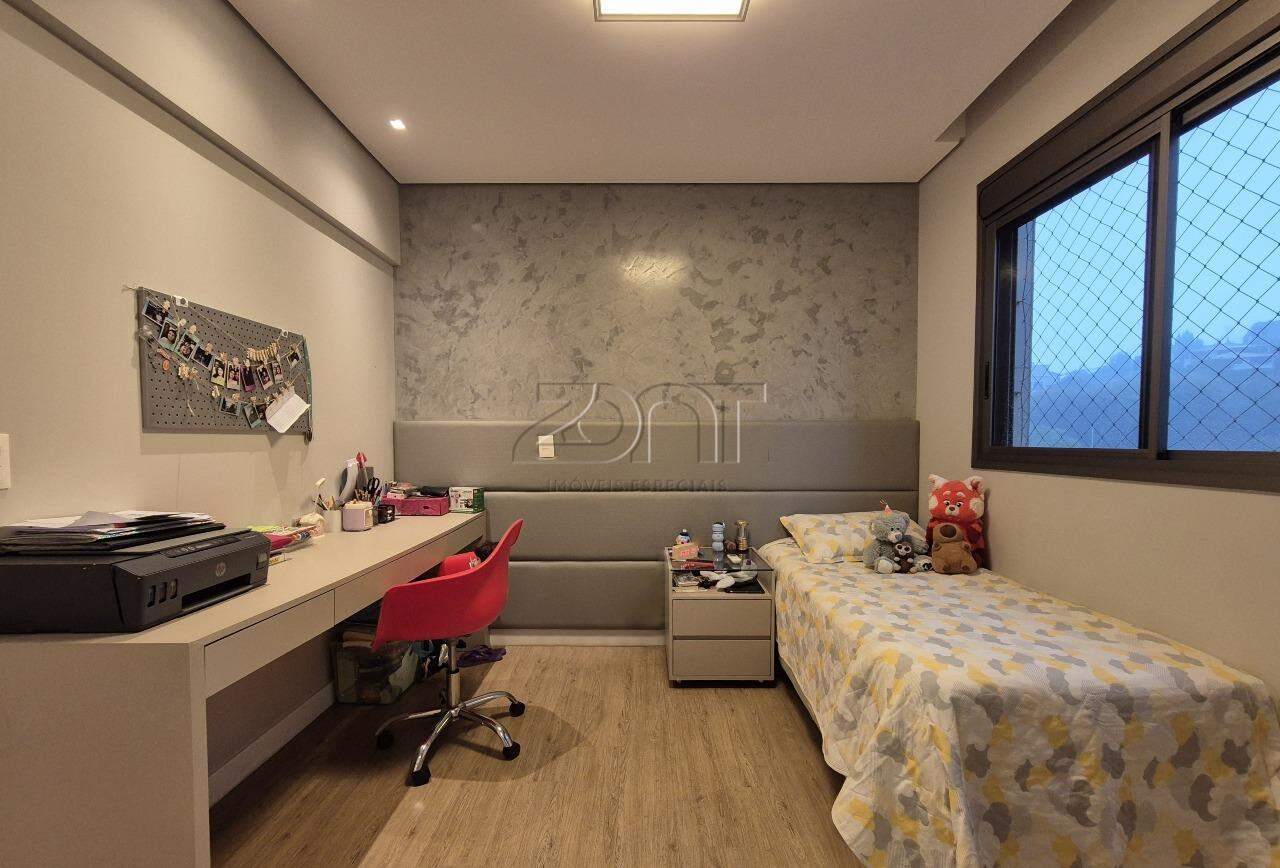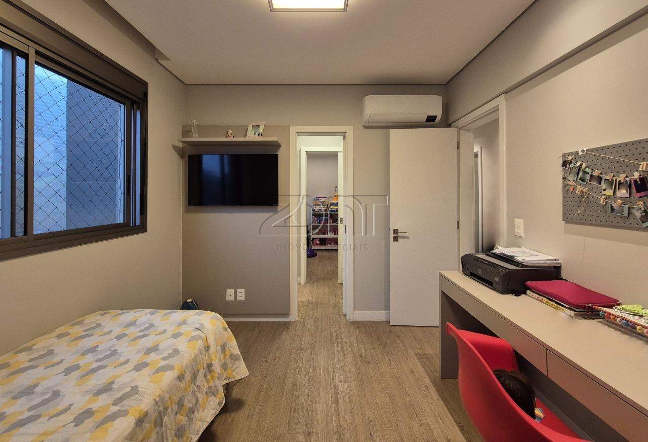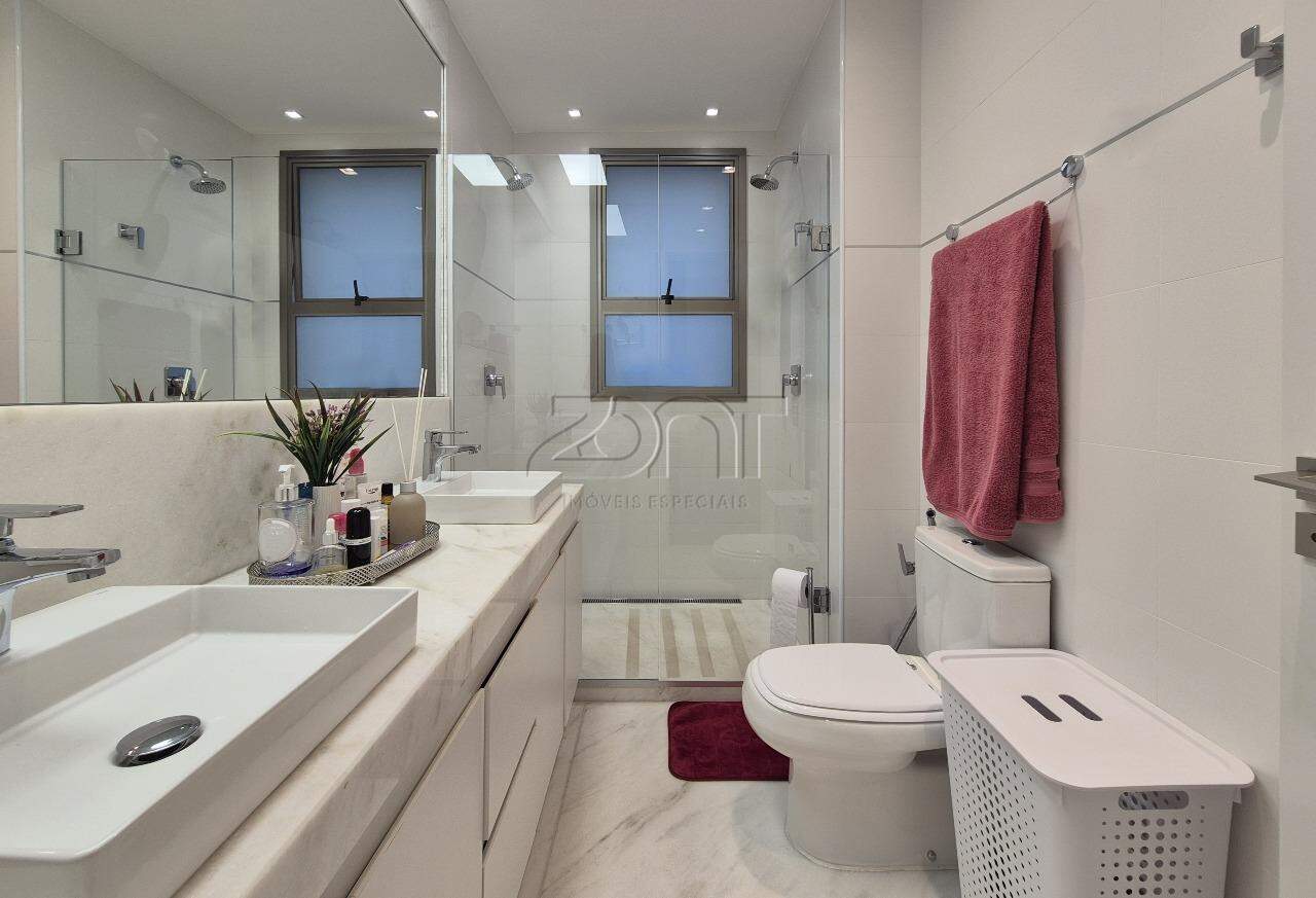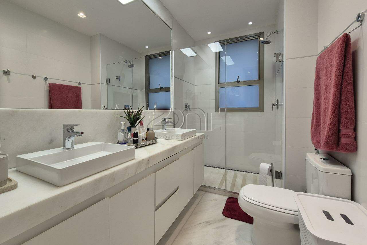 A parte íntima foi cuidadosamente pensada em entregar o aconchego perfeito a cada um dos 4 calorosos quartos, sendo 2 suítes e 2 semi suítes, e contam com ótimos armários com portas de correr, marcenaria planejada, projeto de iluminação, climatização e janelas com venezianas tipo 'black-out'. A suíte master, sempre trazendo o protagonismo, conta com closet vasto, além de relaxante banheiro com bancada com 2 cubas de apoio e box com duas duchas, indispensável para a comodidade do casal. Finalmente e não menos relevante, 4 vagas de garagem - sendo 3 livres e 1 em linha - e satisfatório box de despejo completam esta notável e oportuna opção.