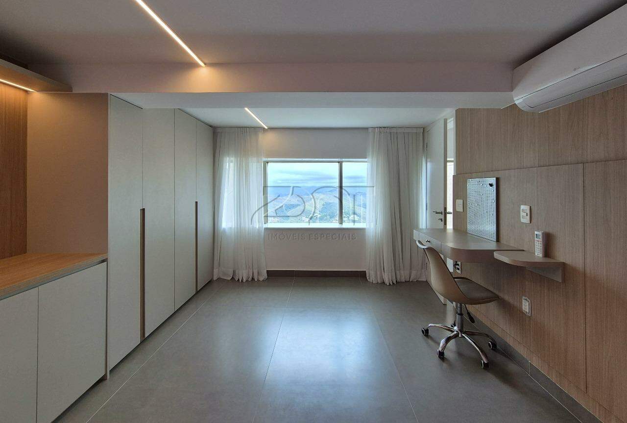 O espaço é perfeito, acomoda com muito conforto a família e quem dirá o casal com planos de ver a família crescer! No primeiro nível os moradores são recebidos em uma ampla sala com 2 generosos ambientes que, apesar de integrados, tem seus propósitos muito bem definidos. À esquerda, a sala de estar | home-theater é perfeita para curtir um bom filme no fim da noite... e no nascer do dia, a ampla varanda revela a apaixonante vista do horizonte infinito do nosso mar de montanhas (fica aqui o desafio de encontrar um panorama mais deslumbrante do que este)! O piso em granito preto é moderno, elegante e traz neutralidade para qualquer estilo de decoração. A sala de jantar faz a intercessão do estar com a atraente cozinha que recebeu volumosos armários em tons metálicos e que harmonizam em perfeita sintonia com as bancadas em granito preto e o revestimento em porcelanato cinza. Anexo à cozinha tem-se ampla área de serviço e banheiro para a comodidade dos funcionários. Na parte íntima os moradores serão acolhidos por 2 semi-suítes amplas e com ótimos armários com portas de correr e janelas enormes que beneficiam-se da vista das montanhas. No 2º nível foram acomodadas 2 suítes, com destaque para a suíte master - aconchegante o bastante para garantir noites de sono bem dormidas - com closet e amplo banheiro que oferecerá banhos revigorantes no box com as duchas de teto! E finalmente a cereja do bolo: a sala de jogos se integra com o terraço que dispõe de espaço gourmet com churrasqueira, mais que convidativo para reunir os amigos nos finais de semana, além de sauna e jacuzzi, mais que ansiadas nas noites em que a única coisa que o corpo pede é descanso! Considere ainda abrir o teto retrátil nas noites estreladas...